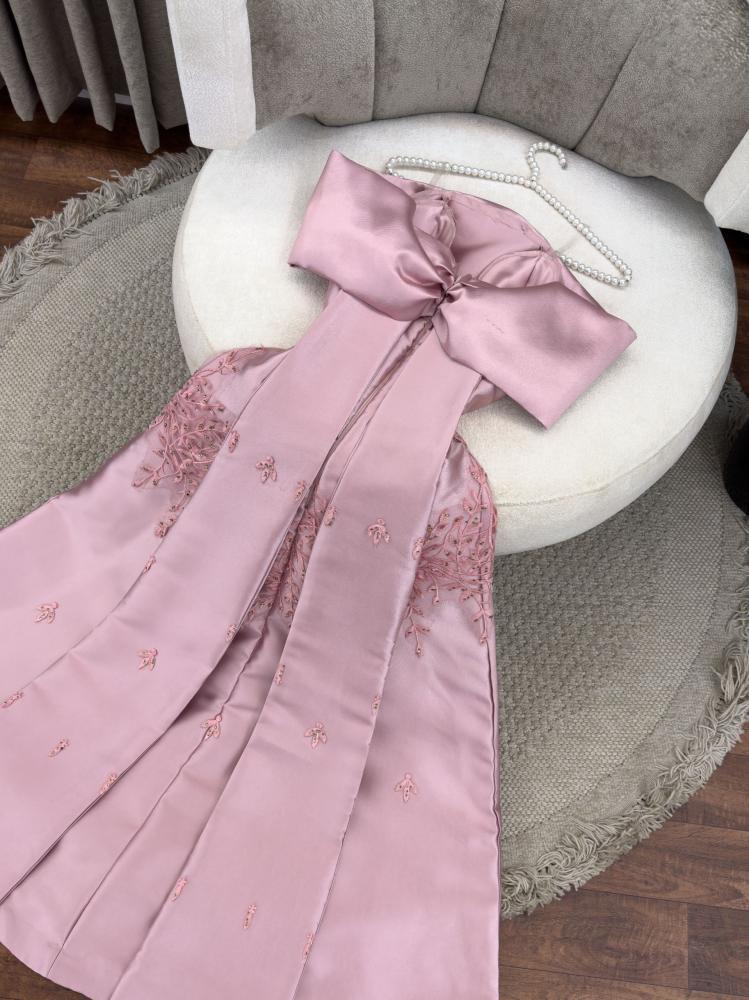 لمسة أنثوية جميلة. فستان يجمع بين أناقة الالون الزهري والاحمر وجمال التفاصيل والتطريز ليكون مثالياً في اي مناسبة لك .