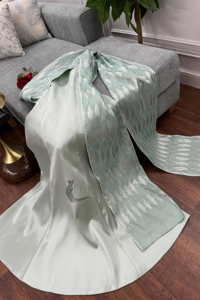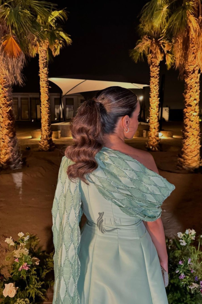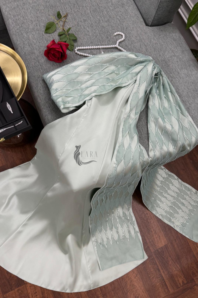 هو لوحة من الرُقي والجمال ستتركين انطباعًا أنيقًا وساحرًا في كل مناسبة عند ارتدائك لهذا الفستان.