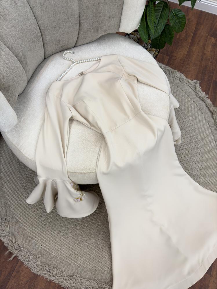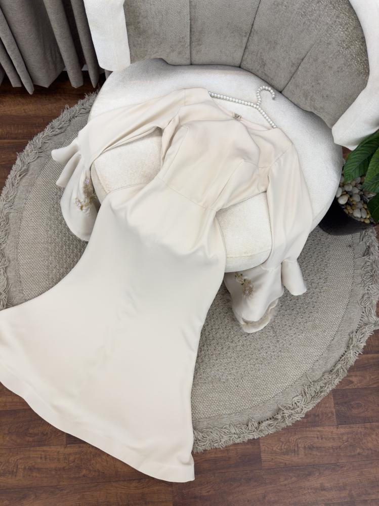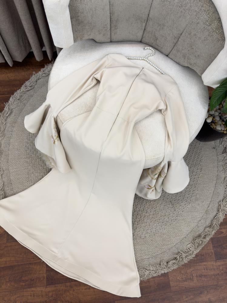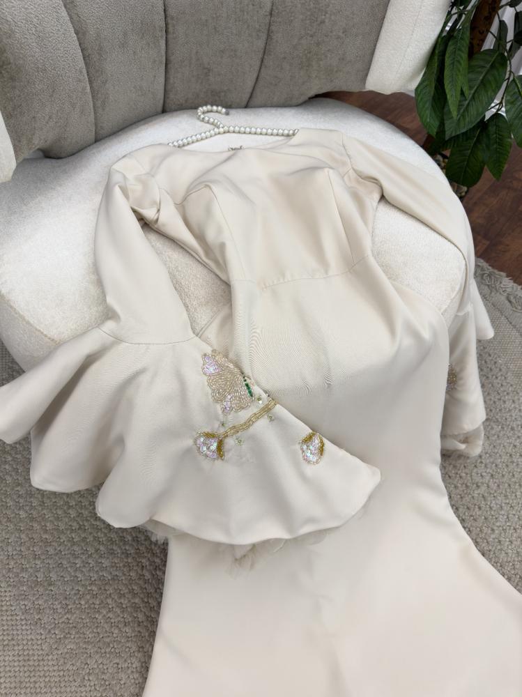 هو لوحة من الرُقي والجمال ستتركين انطباعًا أنيقًا وساحرًا في كل مناسبة عند ارتدائك لهذا الفستان.