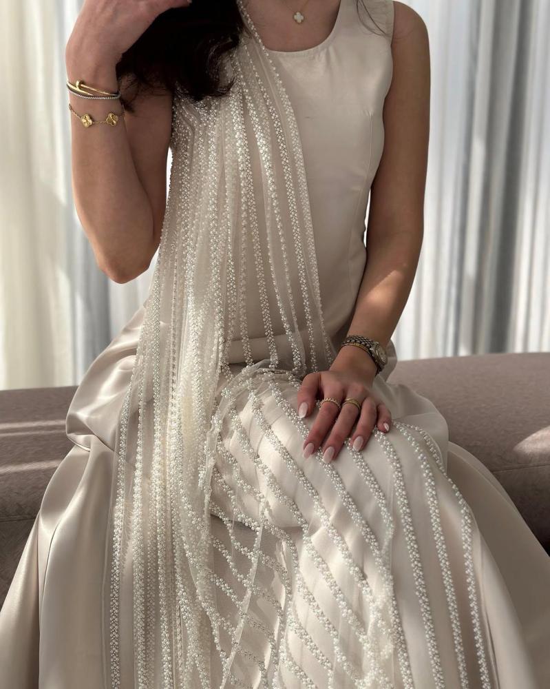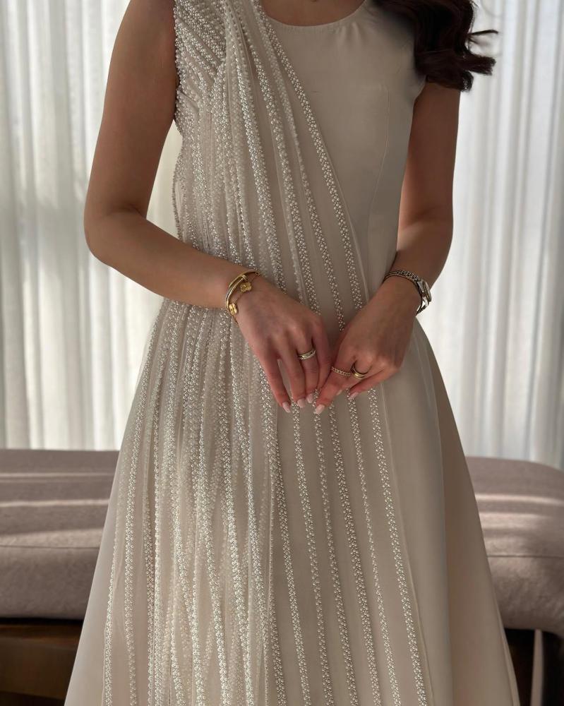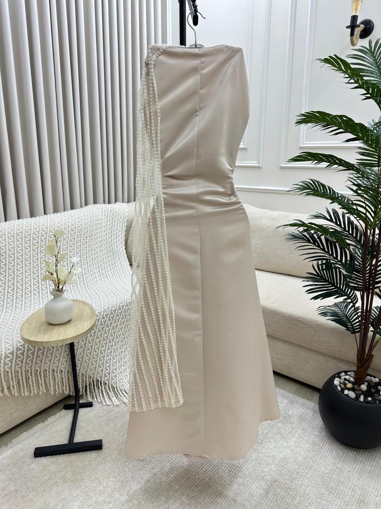 هو لوحة من الرُقي والجمال ستتركين انطباعًا أنيقًا وساحرًا في كل مناسبة عند ارتدائك لهذا الفستان.