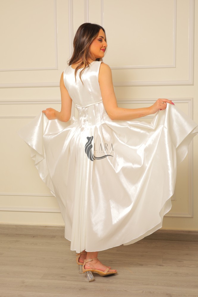 هو لوحة من الرُقي والجمال ستتركين انطباعًا أنيقًا وساحرًا في كل مناسبة عند ارتدائك لهذا الفستان.