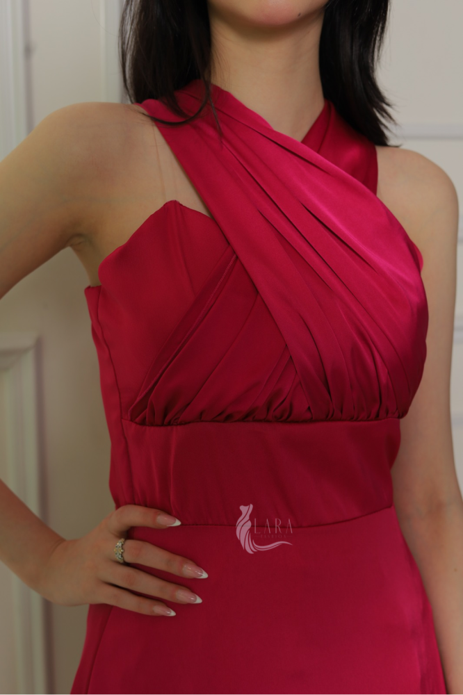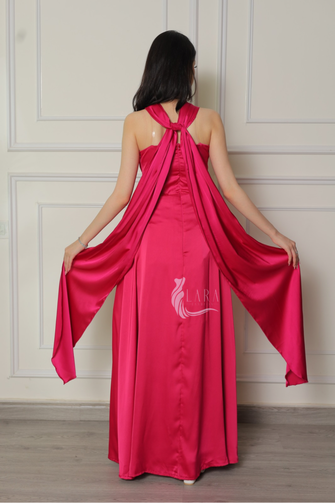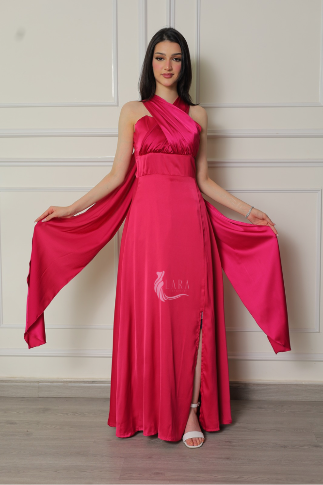 - تألقي بإطلالة ملفتة للإنظار مع فستان فوشي ناعم , يتميز بتصميم باحثر من طريقة لبس ومفعم بالأنوثة
