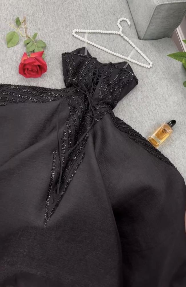 هو لوحة من الرُقي والجمال ستتركين انطباعًا أنيقًا وساحرًا في كل مناسبة عند ارتدائك لهذا الفستان.